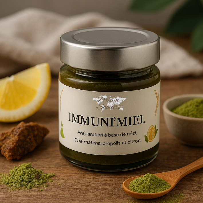 Immuni’miel est une création unique alliant la douceur du miel à la puissance d’ingrédients naturels reconnus pour leurs vertus fortifiantes.